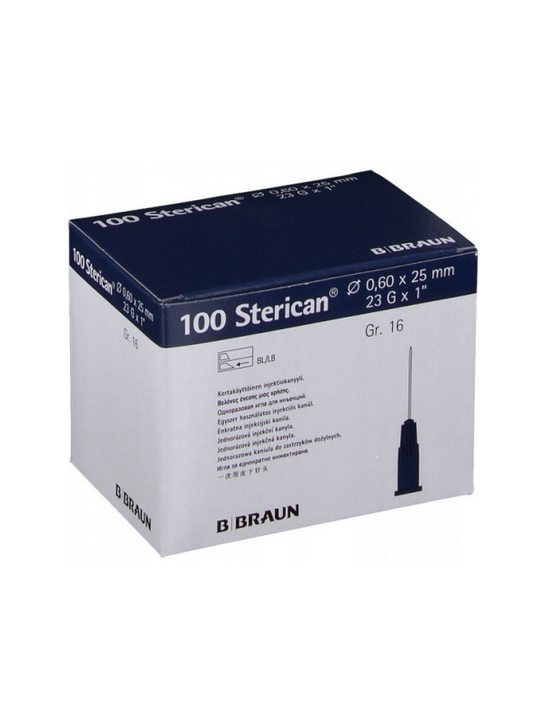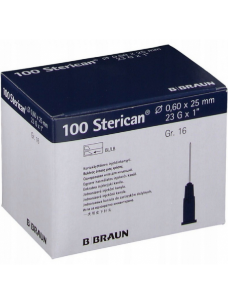 posiada stożek LUERSterican, Jednorazowa igła iniekcyjna 0,60x25mm (23G) 100szt, REF:4657667