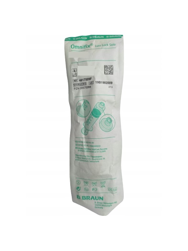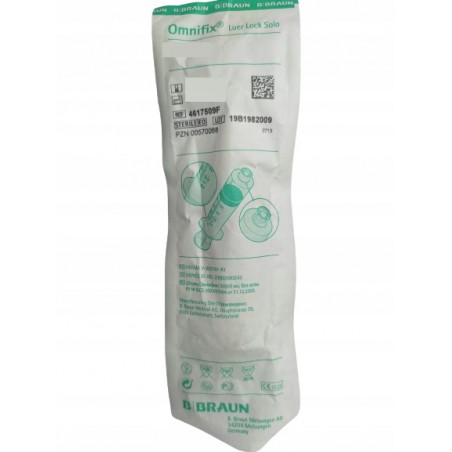 Omnifix Solo to trzyczęściowa strzykawka jednorazowego użytku.Tłok strzykawki posiada podwójne gumowe uszczelnienie wykonane z syntetycznego materiału pozbawionego lateksu. Strzykawka posiada bezpieczną blokadę tłoka zapobiegającą niekontrolowanemu wysunięciu się tłoka z komory strzykawki. Strzykawka posiada owalny ożebrowany kołnierz komory zapewniający pewny uchwyt i zapobiegający obracaniu się w ręce.